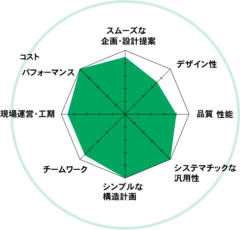 私たちの目指す建物造りは、決して派手な建物ではありませんが、計画段階から余分なコストアップを防ぎ、システマティックな汎用性、シンプルな構造計画を追及した建物です。