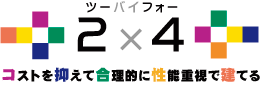 設計において2×4を選択するメリットは多くあります。箱形構造の為、面で外力を分散、吸収するため抜群の強度を発揮します。また、面構造は気密性が高く、熱を逃がさないので、省エネエコ空間が期待できます。