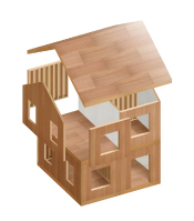 設計において2×4を選択するメリットは多くあります。箱形構造の為、面で外力を分散、吸収するため抜群の強度を発揮します。また、面構造は気密性が高く、熱を逃がさないので、省エネエコ空間が期待できます。